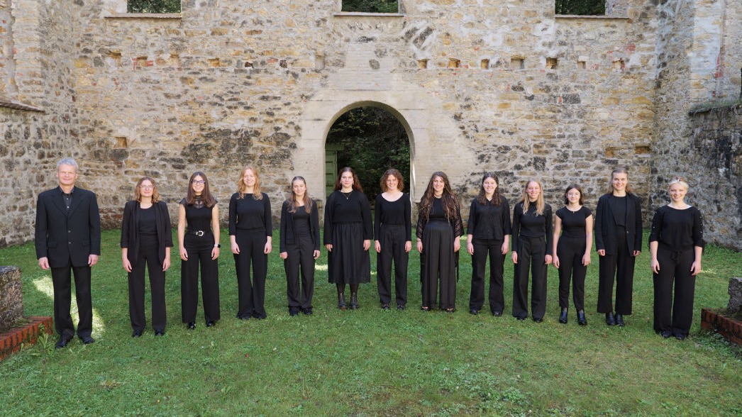 Fotosession im Oktober 2025 in der Kirchenruine 'Maria Hilf' bei Mülheim an der Donau mit dem ganzen A- Chor.